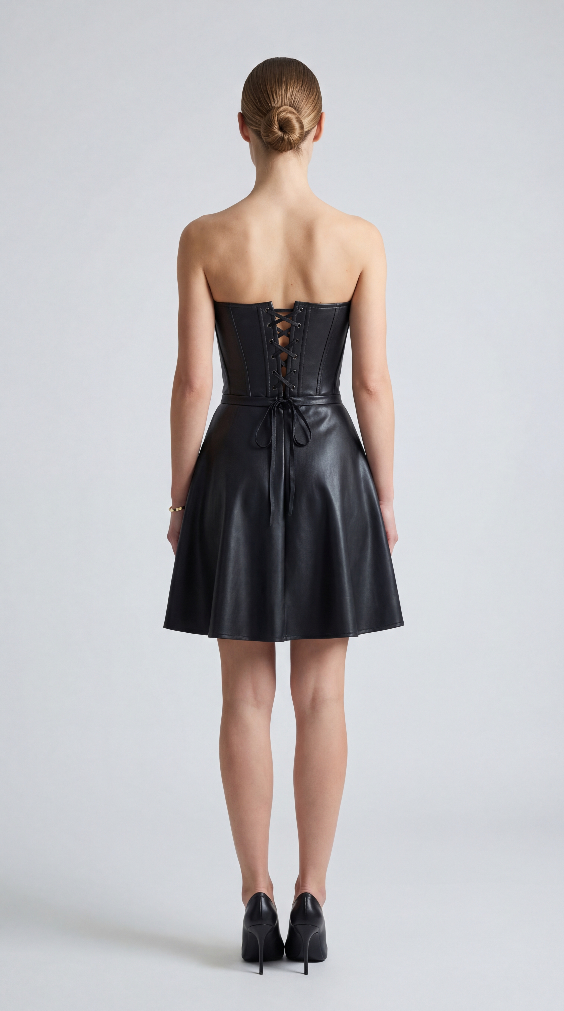 Элегантное весеннее женское платье мини, которое станет вашим главным украшением на любом торжестве или празднике! Уникальное праздничное вечернее корсетное приталенное платье с открытыми плечами. Платье бандо приталенного силуэта, отрезного по линии талии. Верхняя часть платья корсажного типа, с рельефами. Вдоль рельефов на деталях переда до талии настрочной регилин. лина маленького роскошного черного платья выше колен